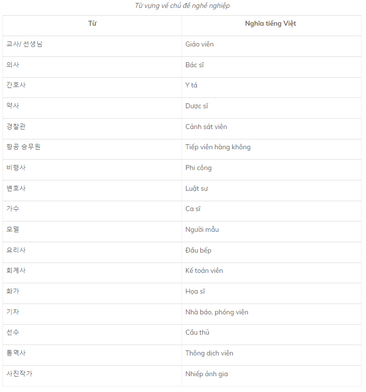 Trên đây TIẾNG HÀN KHÔNG KHÓ đã tổng hợp một số từ vựng tiếng Hàn về nghề nghiệp thông dụng. TIẾNG HÀN KHÔNG KHÓ hy vọng bài viết giúp ích cho các bạn trong quá trình tìm hiểu từ vựng tiếng Hàn. Các bạn hãy đón chờ những bài học bổ ích tiếp theo của TIẾNG HÀN KHÔNG KHÓ nhé!
