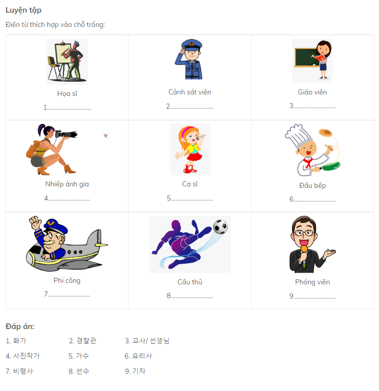 Học nhanh từ vựng tiếng Hàn về nghề nghiệp