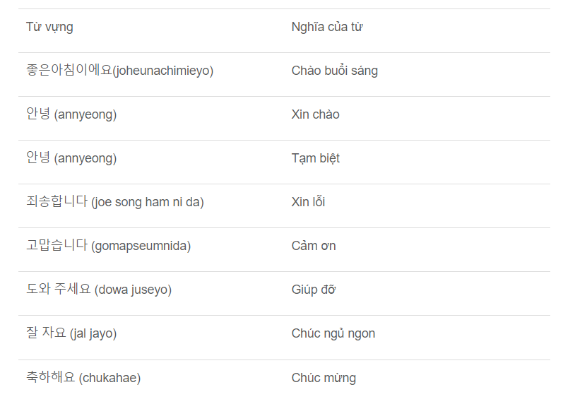 1. Từ vựng tiếng Hàn về chủ đề giao tiếp hằng ngày
