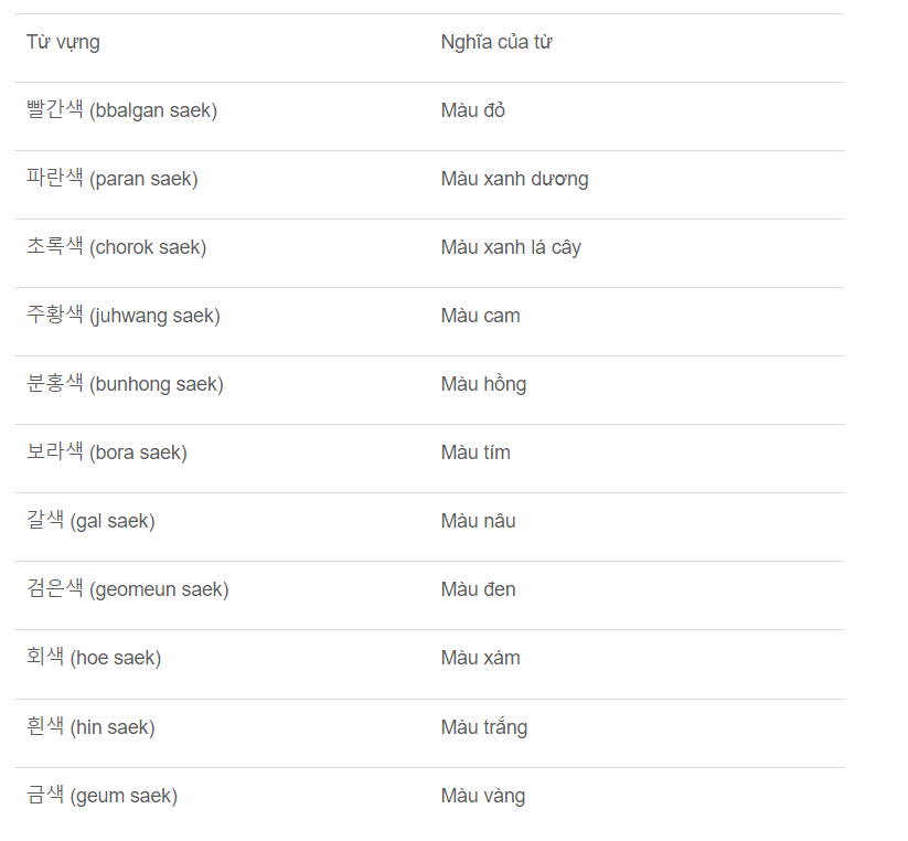 4. Từ vựng tiếng Hàn chủ đề màu sắc