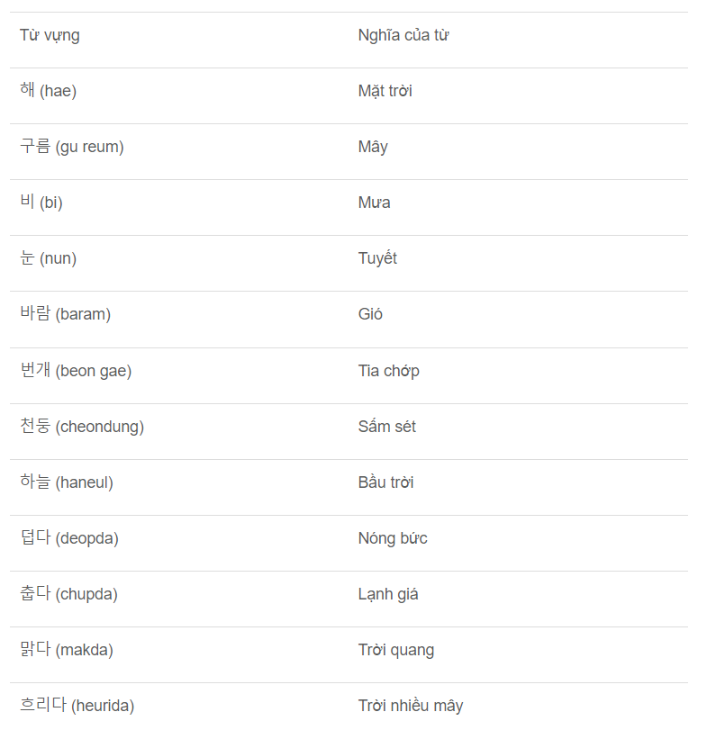 5. Từ vựng tiếng Hàn chủ đề thời tiết